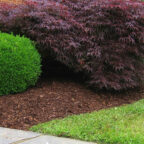 All mulches should be applied approximately 3″ in depth to aid in holding moisture & weed control. Replenishing your mulch should be done yearly to maintain and beautify your beds.